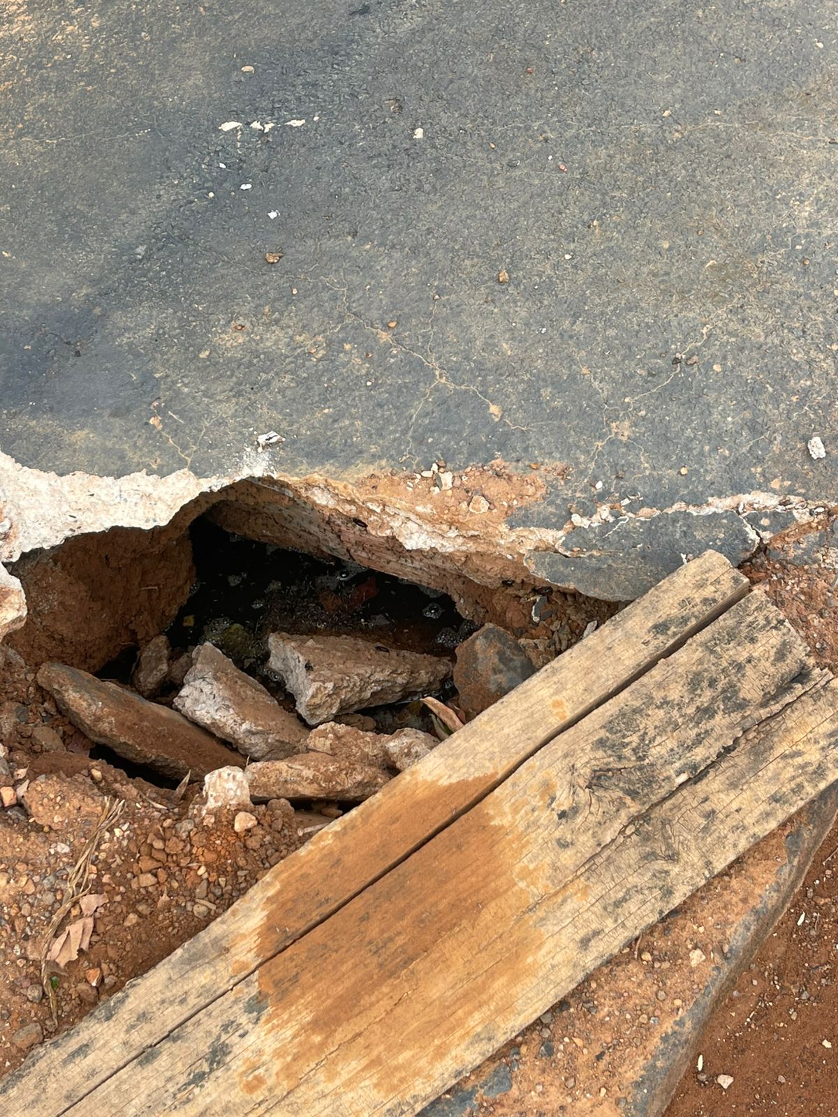 A referida calçada foi danificada durante a execução dos serviços de implantação de rede de esgoto e recuperação asfáltica realizados pela Prefeitura. A máquina que realizou os trabalhos acabou passando sobre a calçada, danificando a tampa da fossa, que permanece aberta, causando risco iminente de acidentes aos moradores e transeuntes.